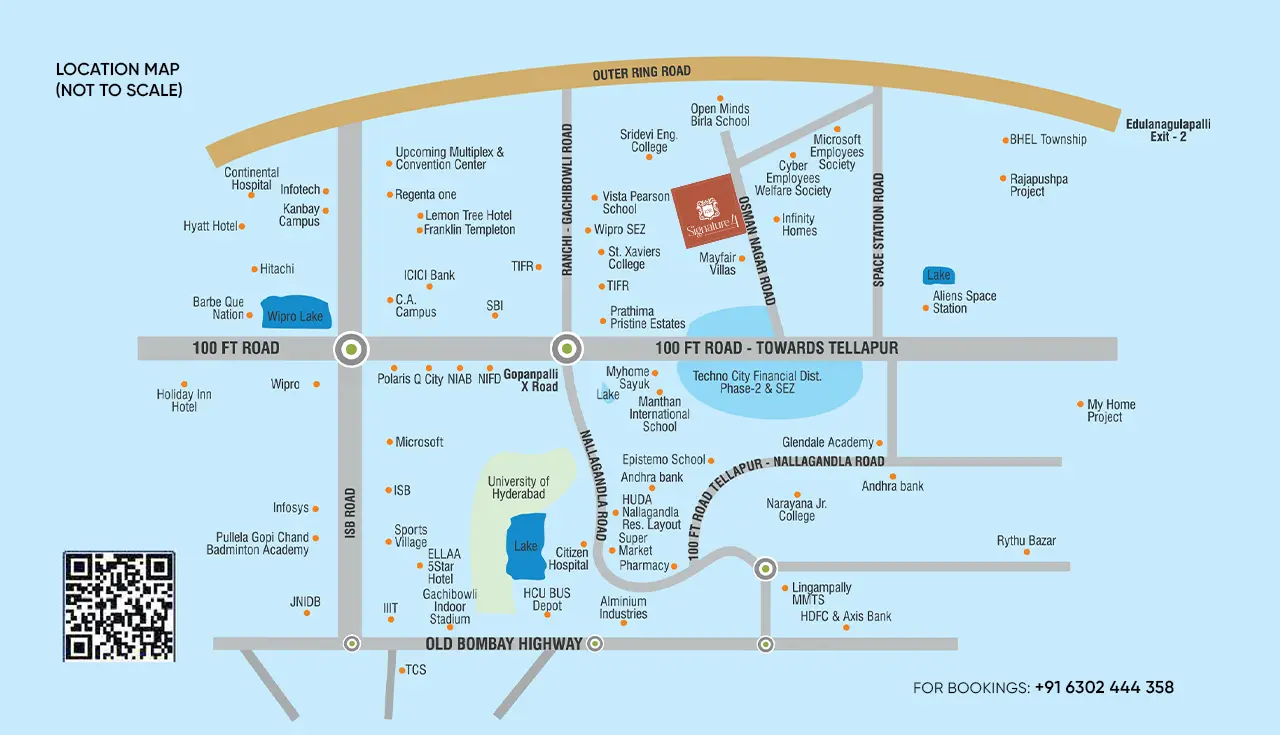 Location is your ultimate advantage. Just minutes from the Financial District, Gachibowli, Wipro SEZ, Microsoft, Infosys, and top educational institutions like ISB and University of Hyderabad, Signature4 keeps you effortlessly connected. With premier hospitals, banks, hotels, and the Outer Ring Road nearby, your daily conveniences and long-term investments are secured.
